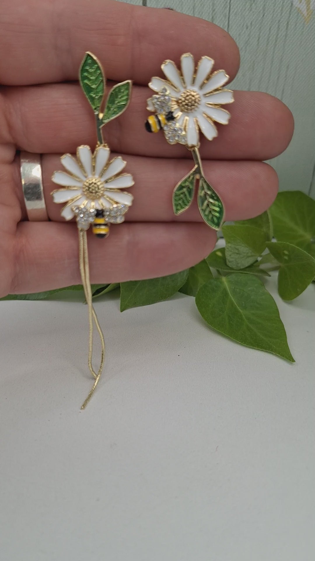 These Daisy & Bee Enamel Asymmetric Earrings feature a stunning combination of delicate flowers and busy bees. The long tassel adds a touch of elegance, making these earrings a beautiful addition to any outfit. Perfect for adding a touch of nature-inspired charm to your wardrobe.